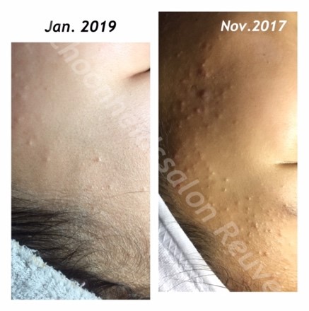 November 2017 gaat de telefoon: “Mijn dochter heeft behoorlijk last van acne en ze stoort zich er enorm aan. Zelf krijgen we het niet onder controle. Mag ze een keertje een afspraak maken?”